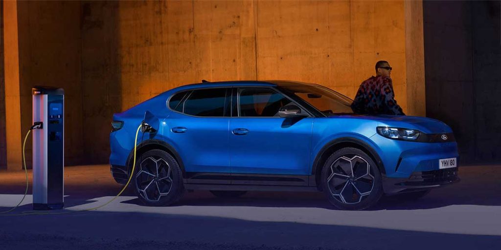 Ford Capri Style Standard Range: Energieverbrauch (kombiniert)1: 16,7-15,5 kWh/100 km; CO2-Emissionen (kombiniert)1: 0 g/km; CO2-Klasse: A; Elektrische Reichweite2: 370-393 km