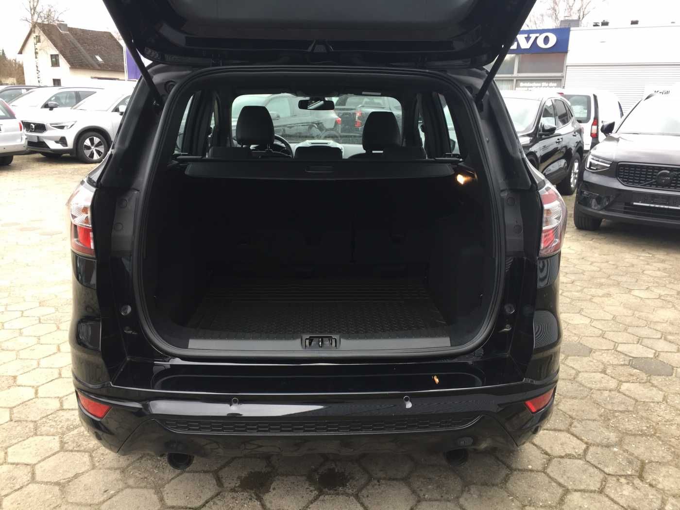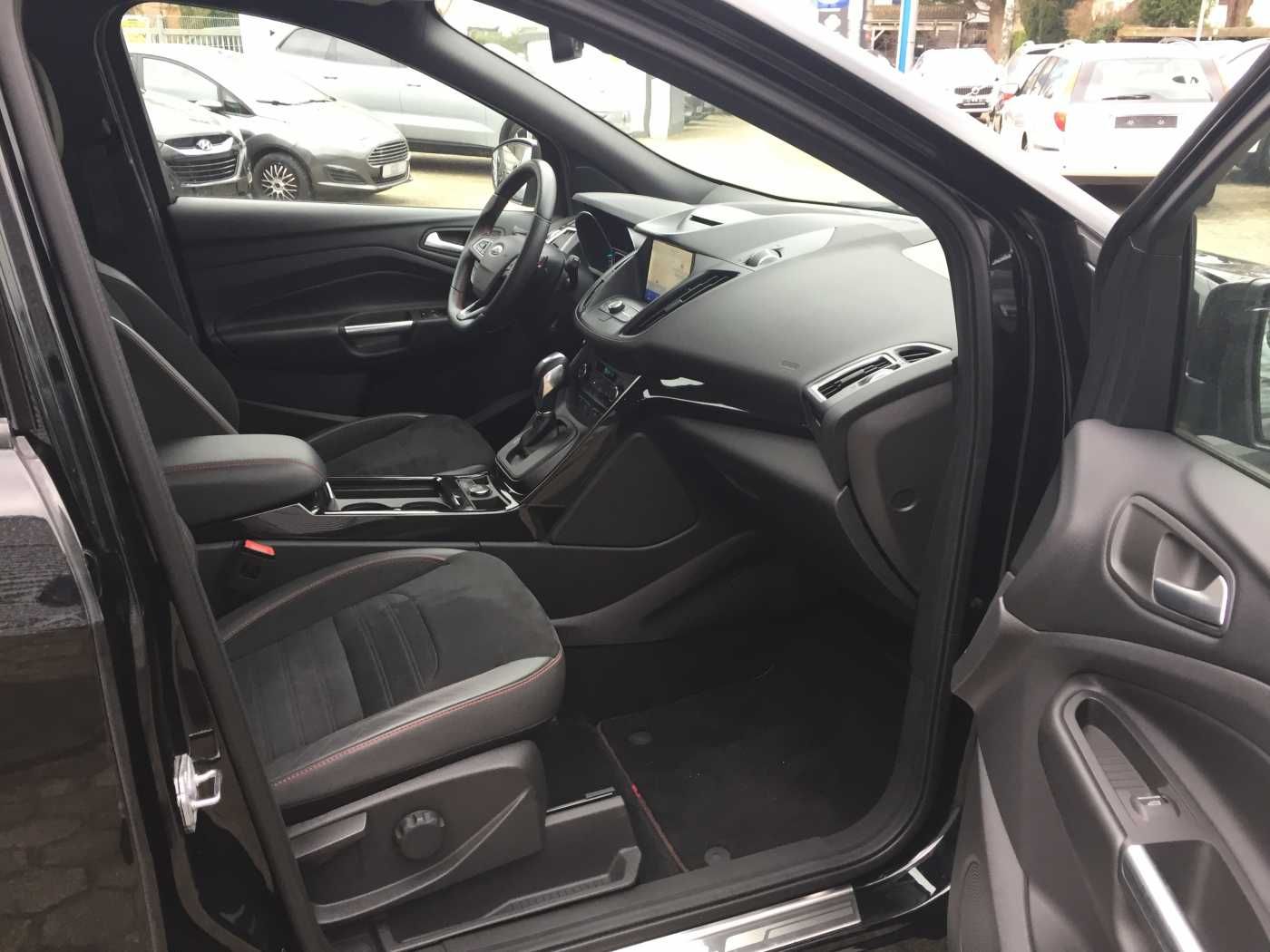 Airbag Fahrer-/Beifahrerseite, Anhängerkupplung Vorbereitung, Anhänger-Stabilisierungs-Programm (TSA), Anti-Blockier-System (ABS), Antischlupfregelung (ASR), Antriebsart: Frontantrieb, Audiobedienung am Lenkrad, Audio-Navigationssystem Ford SD (mit Ford SYNC), Außenspiegel elektr. anklappbar, Außenspiegel elektr. verstell- und heizbar, AUX-IN-Anschluss, Bodenleuchte im Außenspiegel, Body-Styling-Paket, Bordcomputer, Brillenfach in Dachhimmel / Dachkonsole integriert, Dachreling, Dachspoiler Wagenfarbe, Dimmer Instrumentenbeleuchtung, Einstiegsleisten (Edelstahl), Elektr. Bremskraftverteilung (EBD), Elektron. Stabilitäts-Programm (ESP), Fahrassistenz-System: Berganfahr-Assistent (Hill-Holder), Fahrassistenz-System: Notbrems-Assistent, Fahrassistenz-System: Park-Assistent (Active Park Assist), Fensterheber elektrisch vorn + hinten mit Komfortschließung, Ford SYNC 3 mit Navigation, Frontscheibe heizbar, Fußraumleuchte vorn, Geschwindigkeits-Begrenzeranlage, Geschwindigkeits-Regelanlage (Tempomat), Getriebe Automatik – (6-Stufen), Innenausstattung: Aluminium-Dekor, Innenraumfilter: Staub- und Pollenfilter, Innenspiegel mit Abblendautomatik, Intelligent Protection System (IPS), Isofix-Aufnahmen für Kindersitz, Karosserie: 5-türig, KeyFree-System, Klimaautomatik 2-Zonen, Knieairbag Fahrerseite, Kopf-Schulter-Airbag hinten, Kopf-Schulter-Airbag vorn, Kühlergrill schwarz, Lackierung Iridium Schwarz Mica, Lendenwirbelstütze Sitz vorn links, Lendenwirbelstütze Sitz vorn rechts, Lenkrad heizbar, Lenkrad (Leder 3-Speichen), Lenkrad mit Schaltwippen, Lenksäule (Lenkrad) höhen-/längsverstellbar, Leuchtweitenregelung, LM-Felgen 7,5×18 (5×2-Speichen, schwarz), Mittelarmlehne hinten, Mittelkonsole mit Armlehne, Modellpflege, Motor 1,5 Ltr. – 110 kW EcoBoost KAT, My Key (2. Fahrzeugschlüssel programmierbar), Nebelscheinwerfer, Otto-Partikelfilter (OPF), Parkbremse elektrisch, Parkpilotsystem vorn und hinten, Pedale Aluminium, Power KeyFree-Startfunktion, Radstand 2690 mm, Reifendruck-Kontrollsystem, Reifen-Reparaturkit, Rücksitzlehne geteilt/klappbar (60:40), Schadstoffarm nach Abgasnorm Euro 6d-TEMP, Scheibenwischer mit Regensensor, Scheinwerfer mit abgedunkelten Hintergrund, Scheinwerfer mit Ausschaltverzögerung, Scheinwerfer-Assistent mit Tag-/Nachtsensor, Scheinwerfer-Reinigungsanlage (SRA), Seitenairbag vorn, Seitenschweller Wagenfarbe, Servolenkung elektrisch, Sicht-Paket, Sitz vorn links höhenverstellbar, Sitzbezug / Polsterung: Stoff/Leder, Sitzheizung vorn, Sonnenblende links mit Spiegel (beleuchtet), Sonnenblende rechts mit Spiegel (beleuchtet), Sportsitze vorn, Sprachsteuerung und Bluetooth-Schnittstelle, Start/Stop-Anlage, Steckdose (12V-Anschluß) im Koffer-/Laderaum, Stoßfänger hinten Sport-Design mit Diffusor, Stoßfänger Sport-Ausführung, Tagfahrlicht, Tagfahrlicht LED, Türgriffe außen Wagenfarbe, Unterfahrschutz, Unterfahrschutz hinten, USB-Anschluss, Verglasung getönt, Vorrüstung Mobiltelefon/Handy mit Bluetooth-/USB-Schnittstelle, Warnanlage für Sicherheitsgurte hinten, Wegfahrsperre (elektronisch), Winter-Paket, Zentralverriegelung mit Fernbedienung, 6 Lautsprecher,