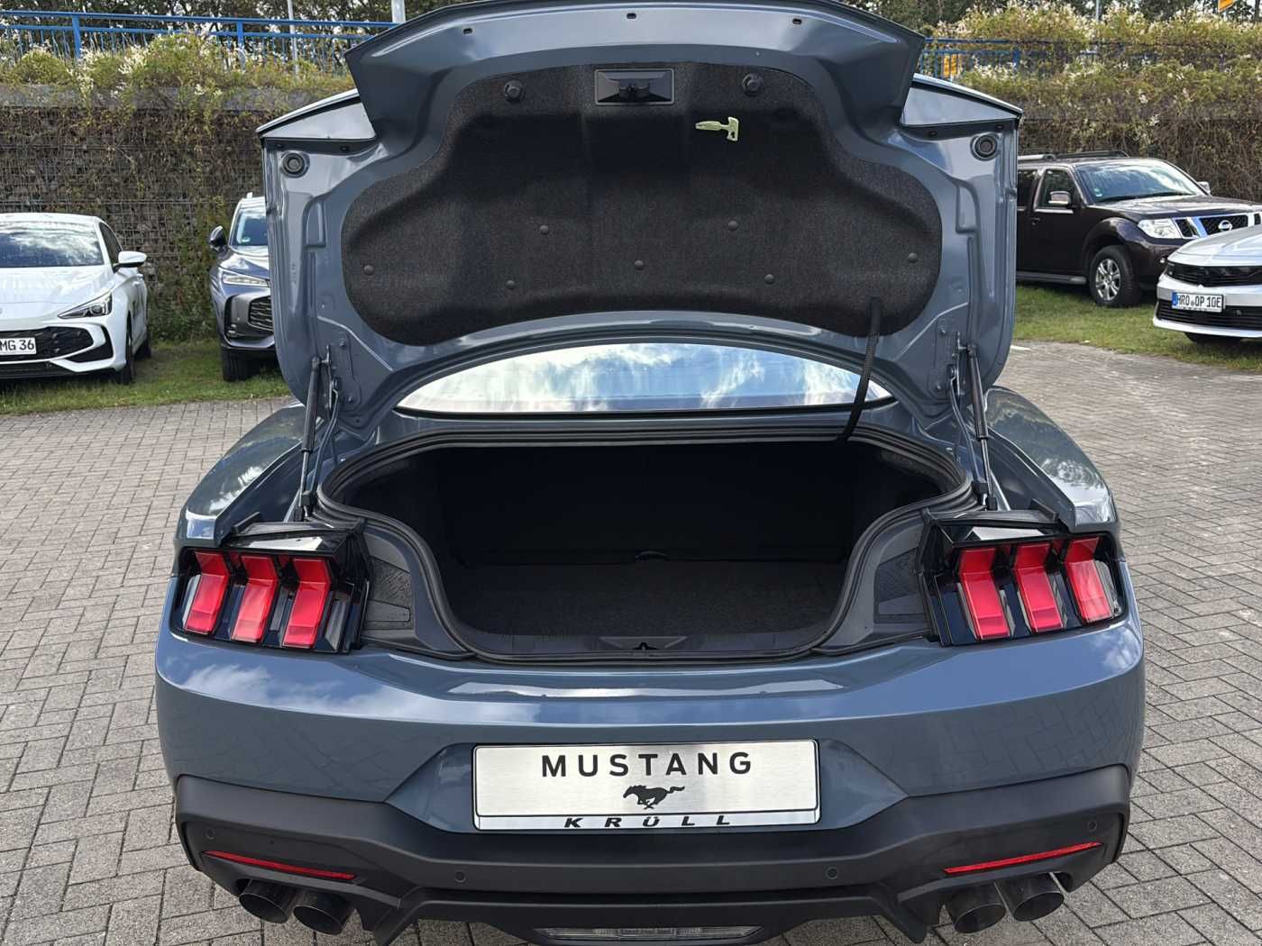 5.0l V8 mit 446 PS Aktive 4-Rohr Klappenauspuffanlage, einstellbar in Modi "Quiet", "Normal", "Sport" und "Track" Heckantrieb mit Sperrdifferential (Übersetzungsverhältnis von 3.55:1 Leichtmetallräder im Stern-Speichen-Design in Carbonized Grey 19" Brembo Bremsen Drift-Handbremse: Elektrische Handbremse mit Auto-Hold, Elektrische "Fly-Off" Handbremse als Driftunterstützung mit verschiedenen Kennlinien "Anfänger" und "Profi" Premium-Sitzpolsterung in Black Onyx (Sitzmittelbahnen Vordersitze in perforiertem Leder) mit Kontrastnähten in Metal Grey Digitale Instrumententafel 12,4" (31,5cm) & Touchscreen 13,2" (33,5cm) B&O Premium Sound System mit 12 Lautsprechern Ambientebeleuchtung