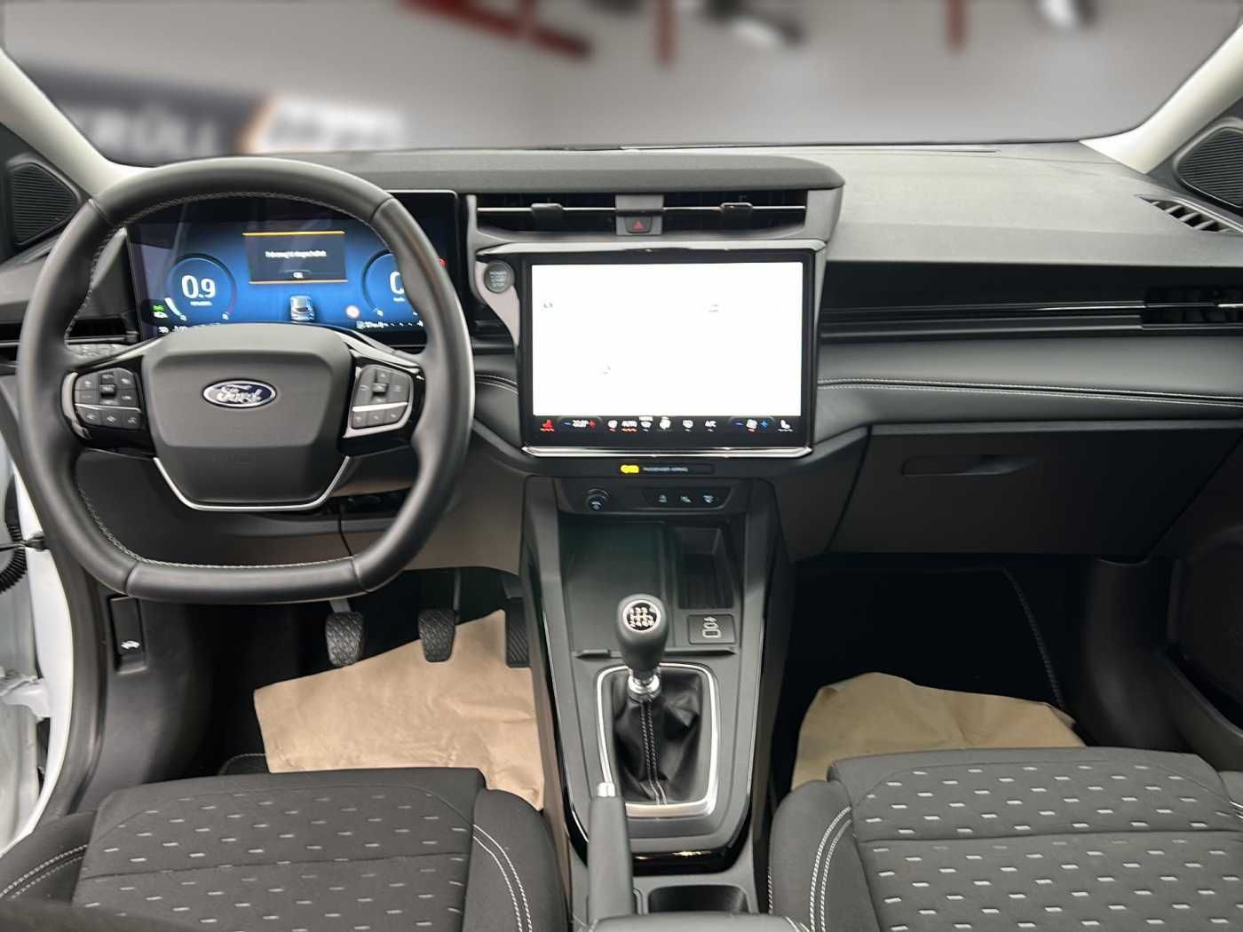 Allwetter-/ Ganzjahresreifen Ambiente-Beleuchtung vorn (LED) Antriebsart: Frontantrieb Bodenleuchte im Außenspiegel Body-Styling-Paket Dachhimmel Stoff Rückfahr-Assistent (Notbremsassistent) Fahrer-Assistenz-Paket Farbdisplay für Bordcomputer Farbdisplay (12 Zoll) FordPass Connect inkl. eCall Fußmatten Teppich Getriebe 6-Gang – Typ: 6MX65 Heckleuchten LED Innenspiegel mit Abblendautomatik Intelligenter Geschwindigkeits-Begrenzer Kombiinstrument Digitalanzeige 12,8 Zoll Kopfstützen hinten mechan. verstellbar (3 Stück) Laderaumboden variabel (Ford Megabox) Lendenwirbelstütze Sitz vorn links Lenkrad heizbar Mild-Hybrid 92 kW (Motor 1,0 Ltr. – 92 kW EcoBoost) Modellpflege Otto-Partikelfilter (OPF) Parkpilotsystem vorn und hinten mit Anzeige für Anhängerrangierweg Radioempfang digital (DAB) Radstand 2588 mm Smartphone-Integration (Apple CarPlay und Android Auto) Sonderlackierung Frost-Weiß Sonnenblende links mit Spiegel (beleuchtet)
